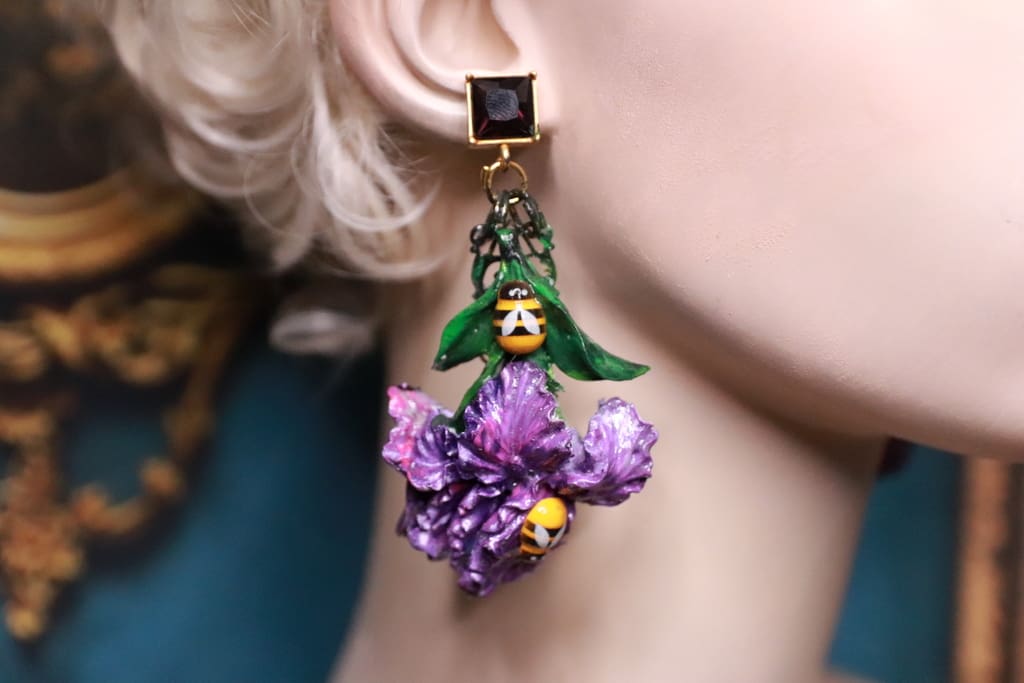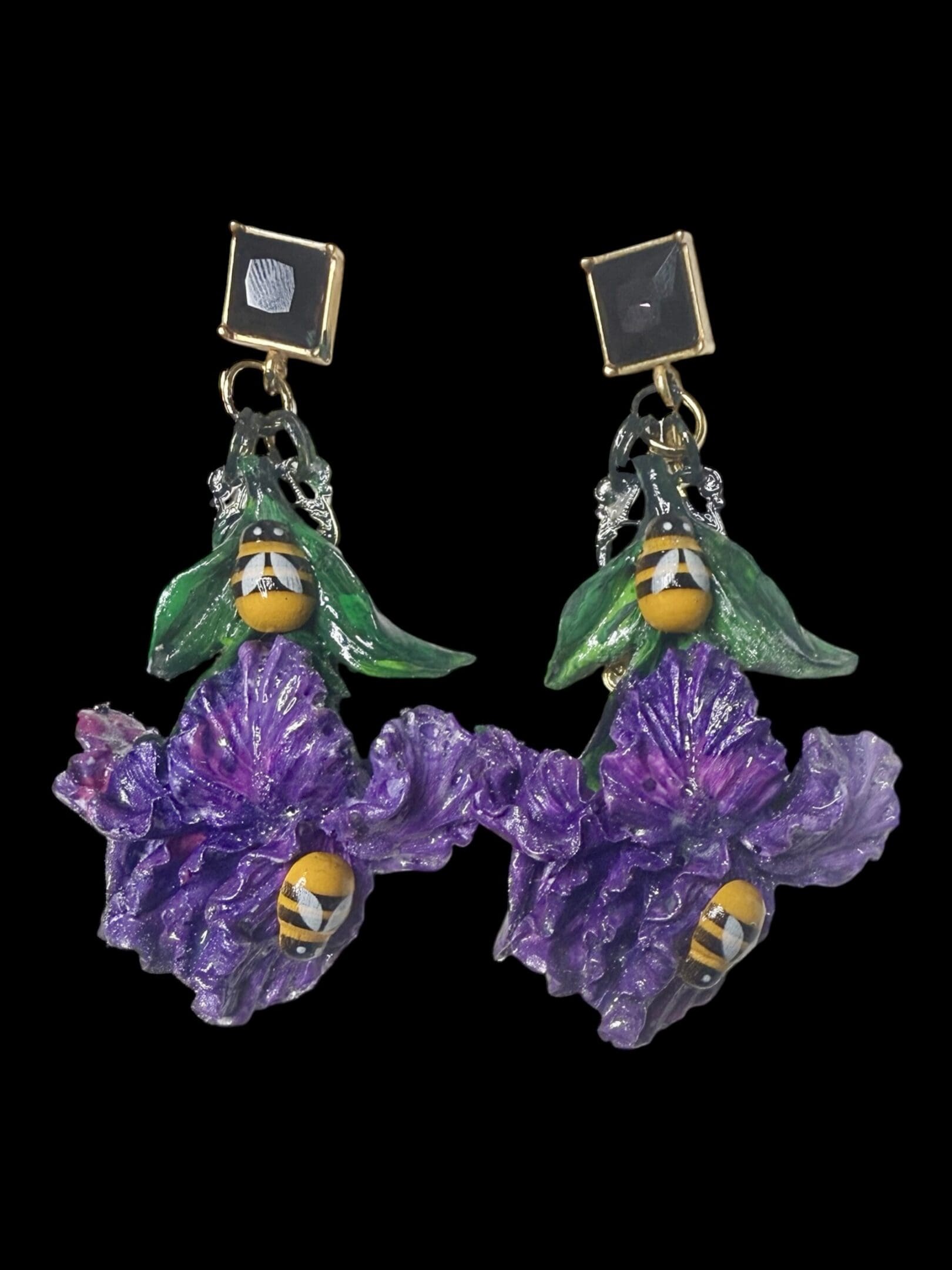 / 423 Realistic Iris Flower Bee Earrings Studs