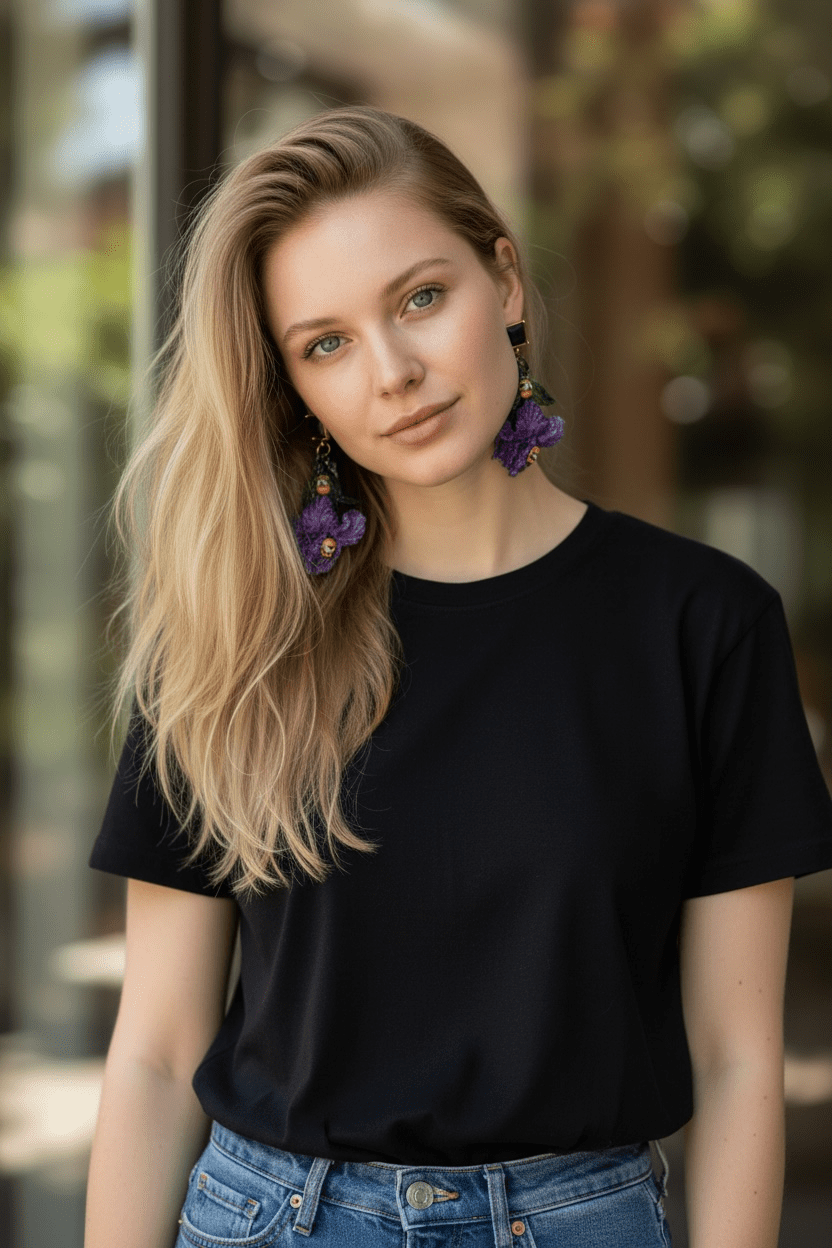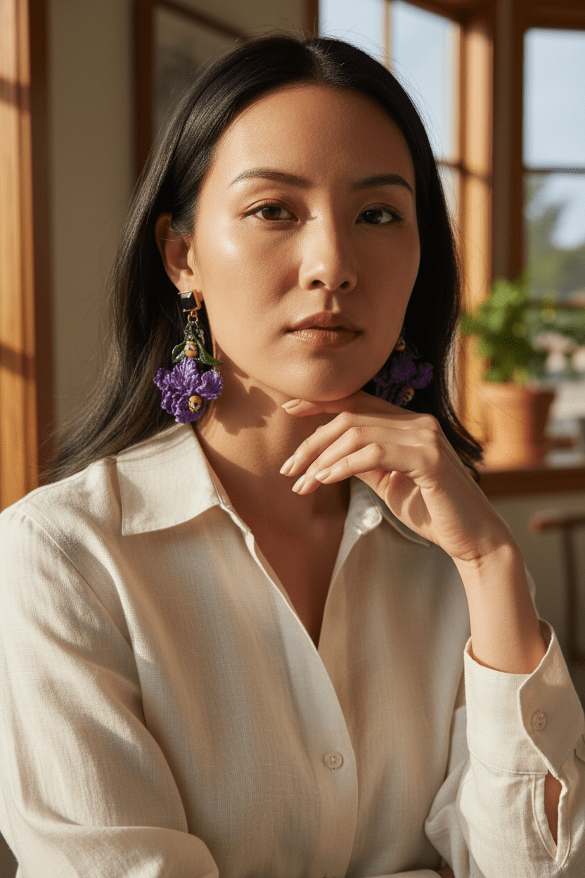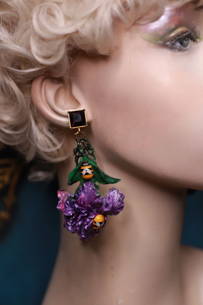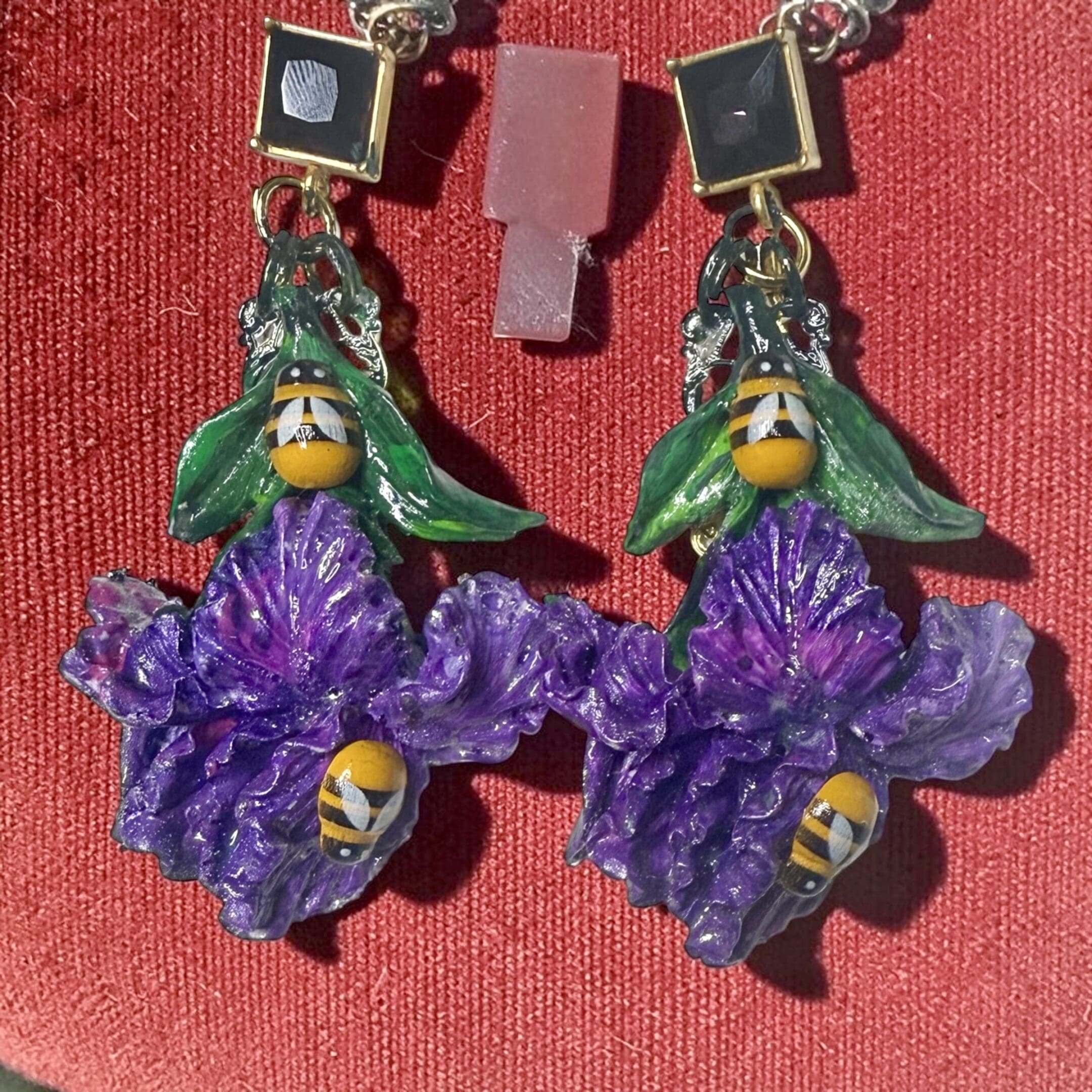 423 Realistic Iris Flower Bee Earrings Studs quantity
