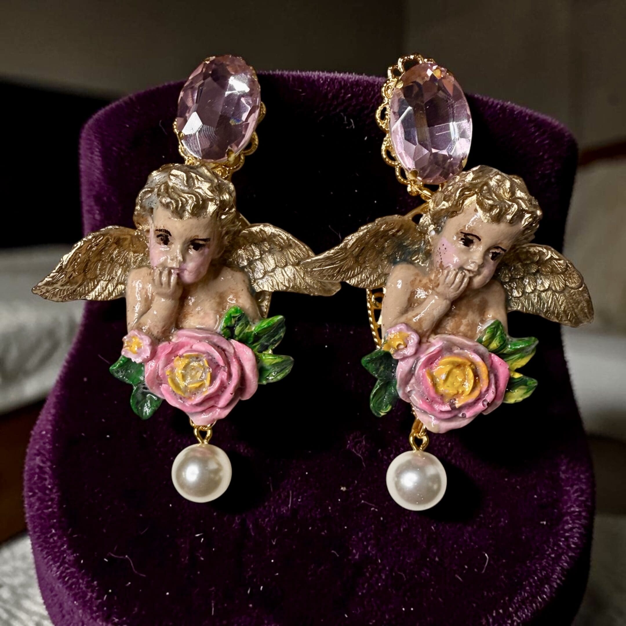 Tag: Baroque Winged Cherubs Statement Earrings Studs