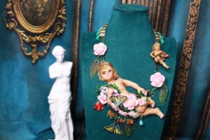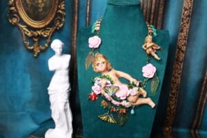 The cherub, symbolizing innocence, protection, and divine love, is brought to life in soft, dreamy tones, giving this piece an ethereal and vintage-inspired feel. Lightweight yet durable, it’s perfect for daily wear or as a statement piece for special occasions.